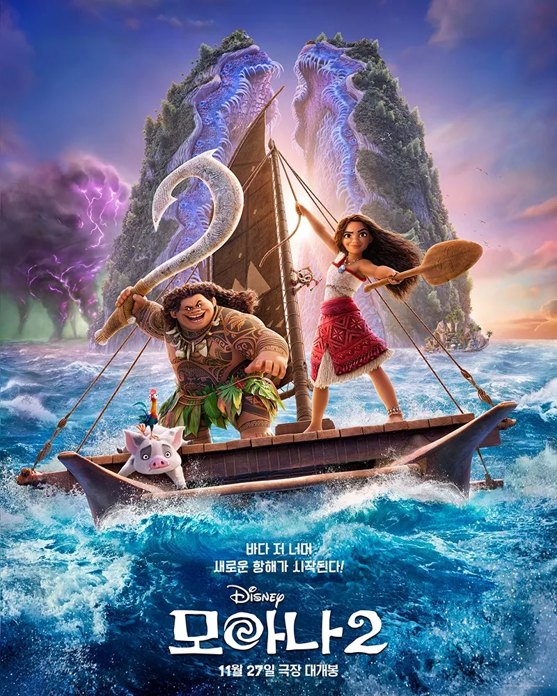 드디어 <모아나 2>의 극장 대개봉 날이 다가왔습니다. 포스터를 보아하니, 조금 자란 모아나와 여전한 마우이가 바다를 모험할 것 같습니다. <모아나 1>보다 훨씬 더 복잡하고 어려운 여정일 텐데, 어디까지 디즈니가 우리를 데려가줄지 너무나 기대가 됩니다. 아직 1편을 못 봤다면 지금 바로 시청한 후에, <모아나 2>는 꼭 영화관에서 보길 추천하겠습니다. 저처럼 1편을 잊지 못해 아직도 모아나앓이를 하고 있다면 <모아나 2>는 영화관에서 n차 관람하기를 추천하는 바입니다.